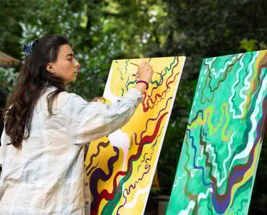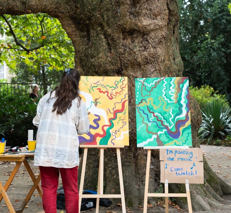 Slow down, tune into your senses and watch the colours come to life on the canvas, as I translate music and sound into one-of-a-kind paintings.